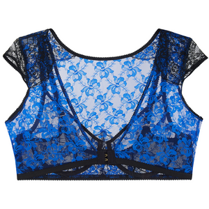 Lyla Cap sleeved crop top with contrasting lace accents to the shoulder and centre bust. The elegant high front neckline gives way to a dramatic low V shaped back. The internal underwired bra lifts, supports and shapes the bust for an impeccable fit.